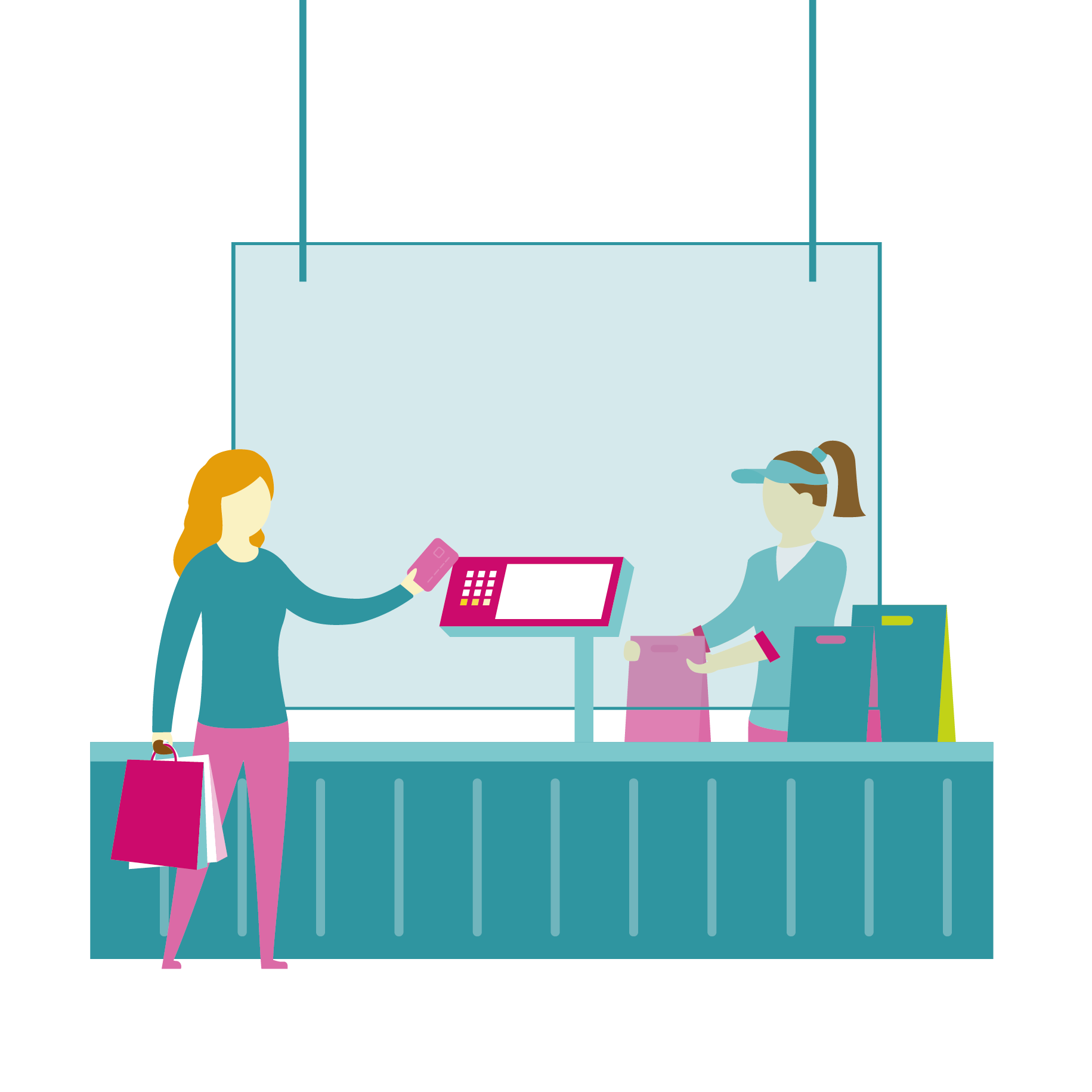 In current situation, we offer this prevention solution. This prevents you and Your client from direct contact. The shape can be adapted for any size and shop situation. Perfect solution for big surface shop or counters with big material movement.
